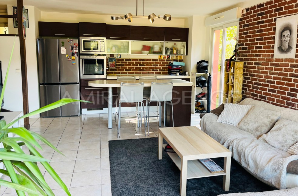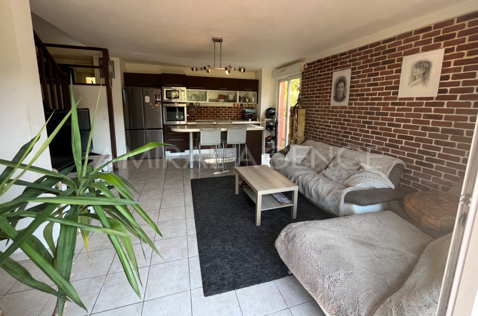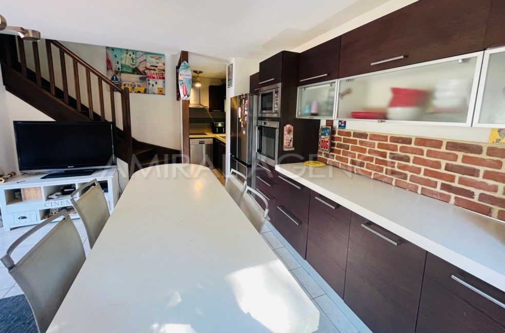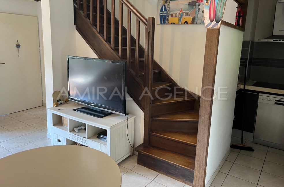 AGREABLE TROIS PIECES EN duplex à environ 5mn du bord de mer.Vaste salon avec cuisine ouverte équipée et aménagée avec confortable coin repas.