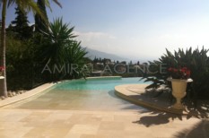 EXCLUSIF ET TRES RESIDENTIEL,LUXUEUSE VILLA belle époque à 10 mn de la Principauté avec vue mer panoramique.Sur 2 niveaux,la villa offre une entrée principale sur un double salon et coin cheminée.